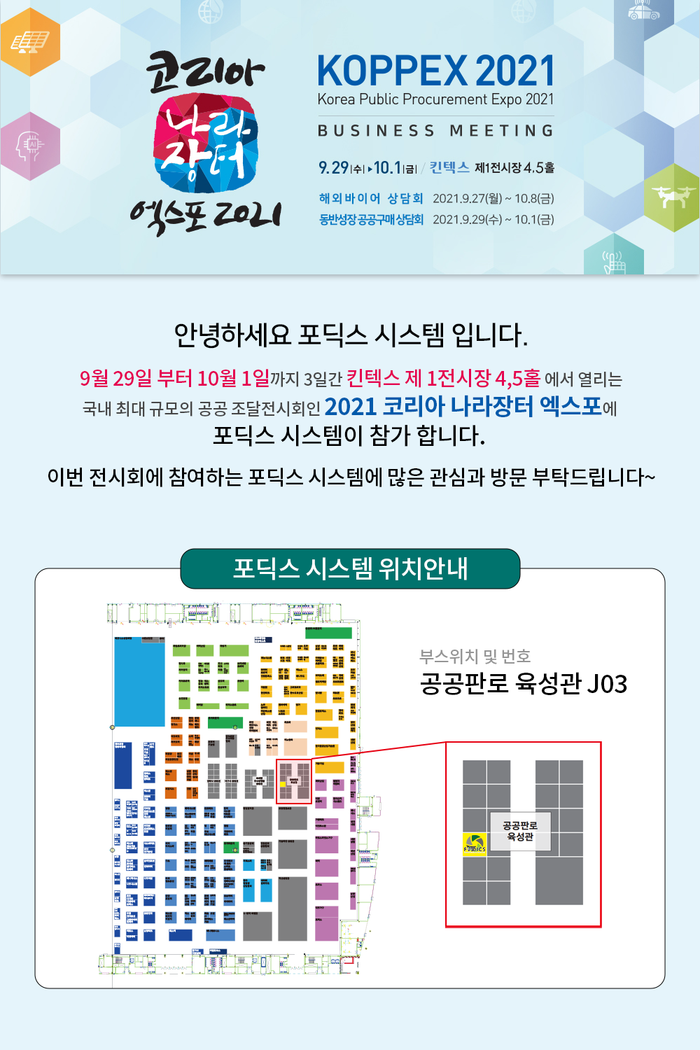 [컨퍼런스/전시회] 코리아 나라장터 엑스포 2021 에 포딕스 시스템이 참가 합니다.