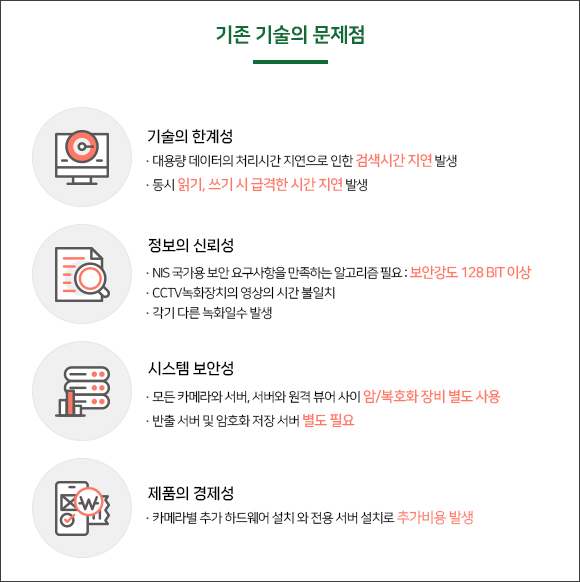 - 영상 데이터의 암호화로 외부해킹 및 유출을 사전에 방지 가능